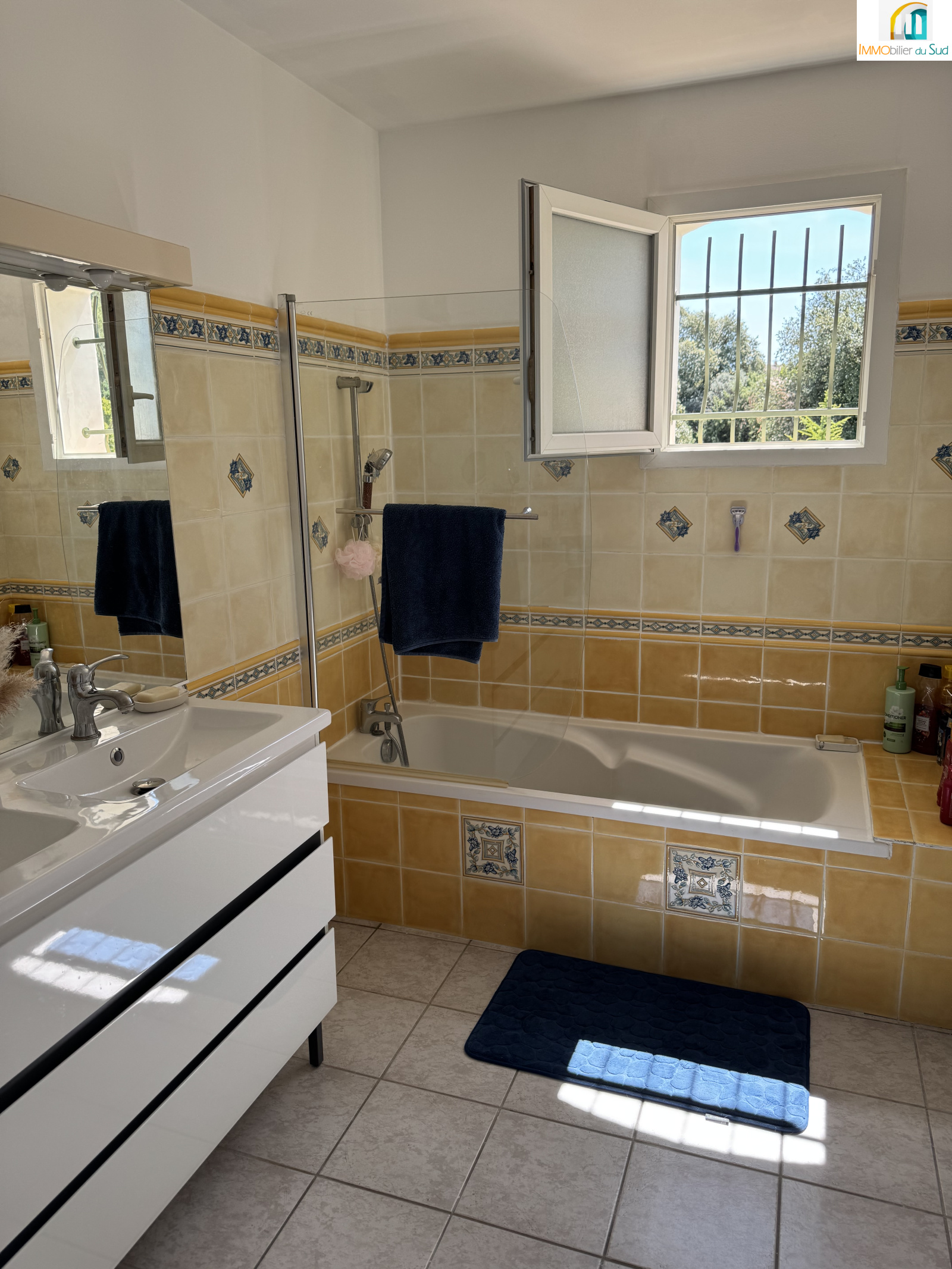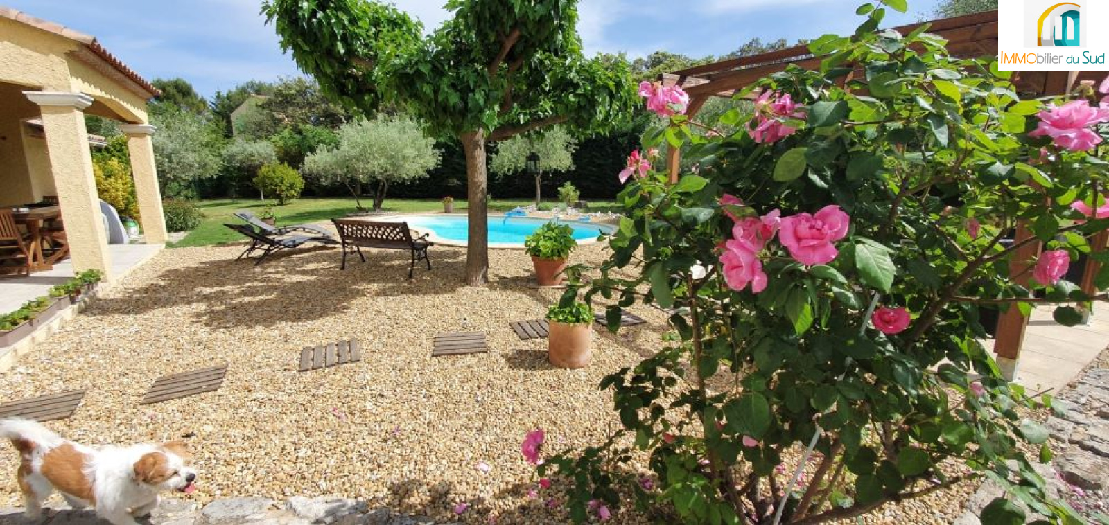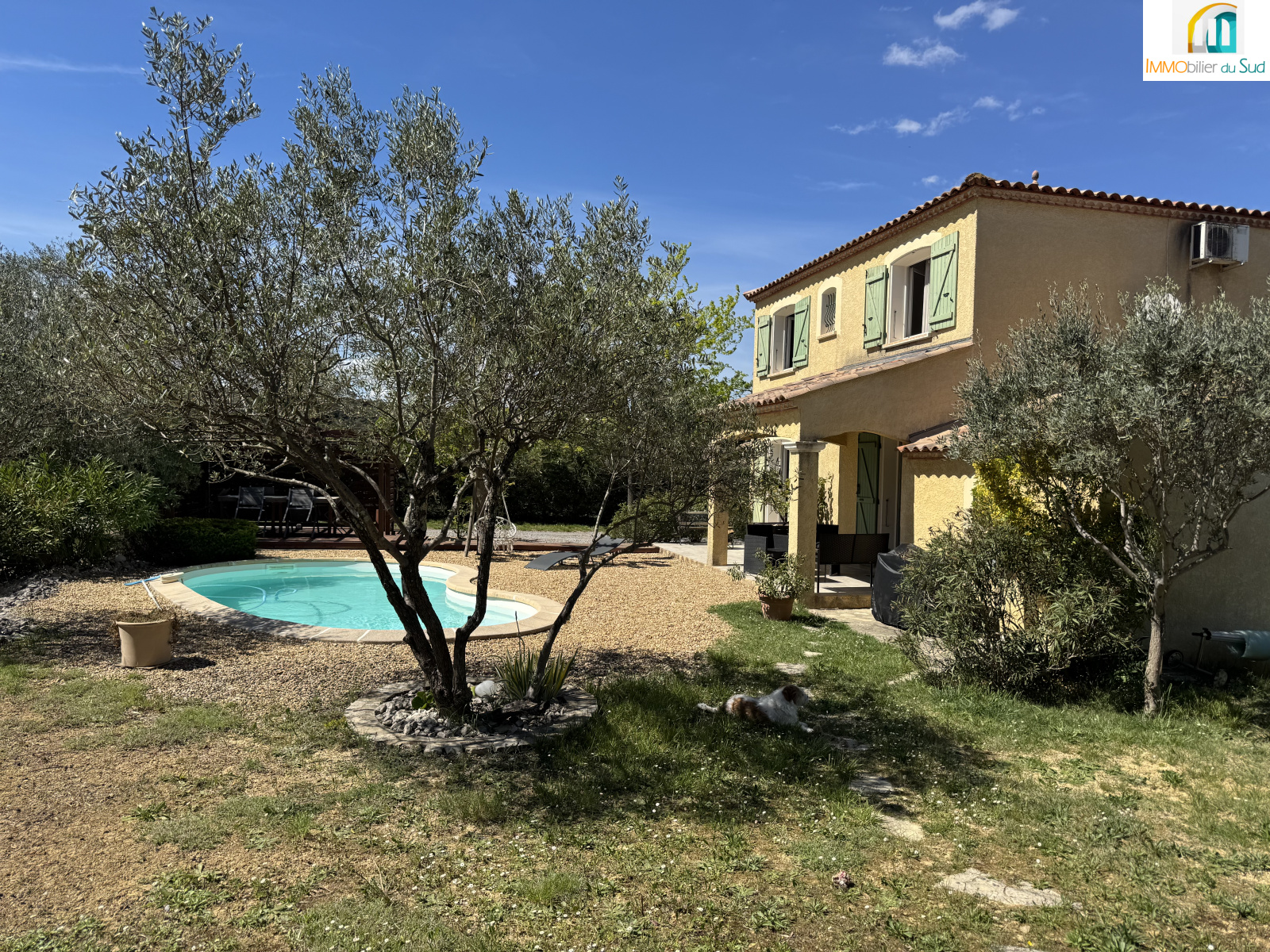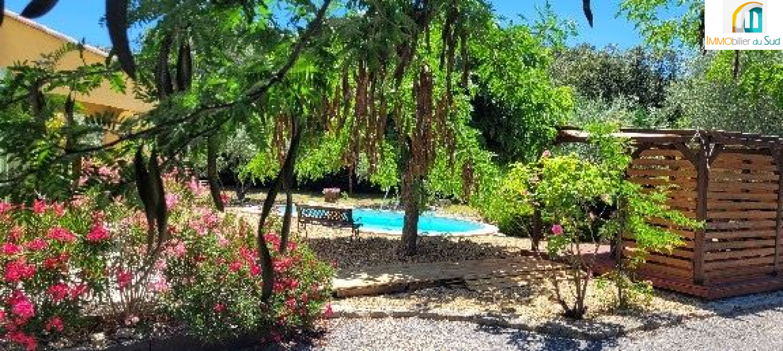 Proche ANDUZE ,, VILLA construite dans les années 2000 offrant un jardin très agréable avec ses fleurs et ses oliviers autour de la jolie terrasse ensoleillée. donnant sur la piscine proposant une ambiance de zenitude Cette maison. est composée d'une entrée avec rangement et d'un wc d'une pièce à vivre de 40 m2 avec sa cheminée avec insert chauffant les deux niveaux d une cuisine equipée, d'une buanderie très pratique et dun garage de 15 m2 communiquant avec la maison A L ETAGE , une salle de bain et 3 chambres.et un wc indépendant La surface intérieure habitable mesure approximativement 95m² mais 87 m2 selon LE DPE . LE terrain. Ivous fait bénéficier d'une aire de parking et d'un garage privatif. et d'un abri voiture très facile pour garer et protéger sa voiture Pour ce qui est du prix, il est fixé à 329 000 euros.